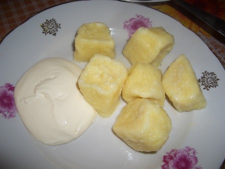 Ингредиенты: творок рассыпчастый (вареники получаются более воздушными именно из-за консистенции творога)-500гр, 2-3 яйца, щипотка соли,2-3 ст.л. сахара, 3-4 ст л. с горкой муки, масло сливочное,сметана.