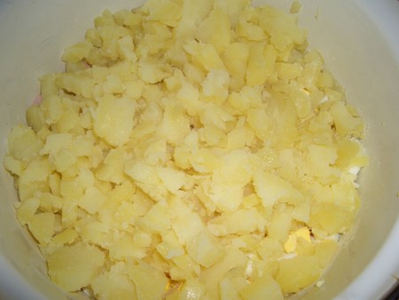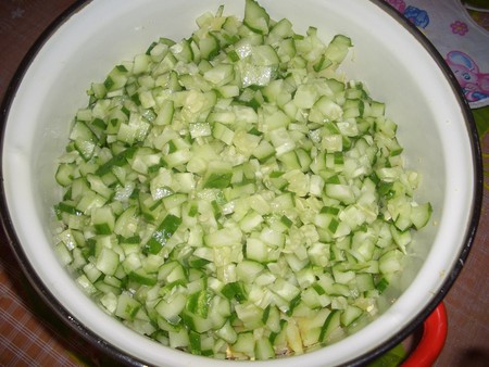 Способ приготовления: режем все ингредиенты как на мясной салат
