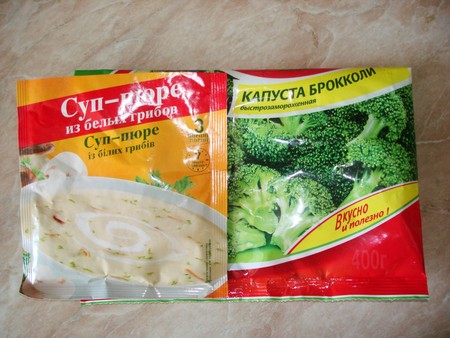 10 мин до закипания отварила брокколи, 750мл водички из-под отваренного довела до кипения и всыпала смесь из пакетика,пока все закипало - в блендере превратила капустку в зелененькую массу и ввела ее в кипящий бульончик))) Посолила, добавила 50мл сливок и дала закипеть!!