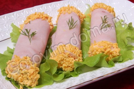Сделала,но еще не украсила вот эти рулетики (ветчина с сыром и чесноком)
