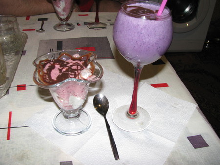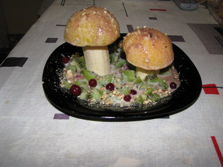 Это он мне десертик сварганил :))) Вкусно нереально было!!! Да и додуматься до такого!!! (сверху кстати консервированный персик)