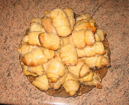 Печенья, пирожные, торты, пончики, кексыПогода сегодня с утра не заладилась и я придумала как себя и дочу занять. Как-то откушала я у соседки дивные рогалики, все у них было как доктор прописал, вот только времени на них не хватало. Сегодня впервые их приготовила и вот что получилось