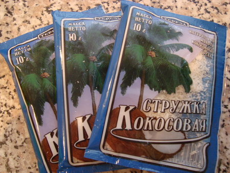 1 банка вареной сгущенки, 6 пачек кокосовых стружек, 1/4 стакана орехов, 100 гр. сливочного масла.