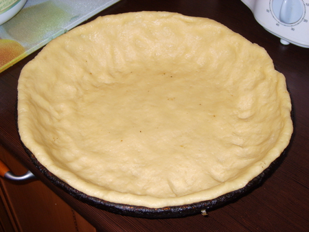 Выкладываем в форму наше тесто и разравниваем руками.