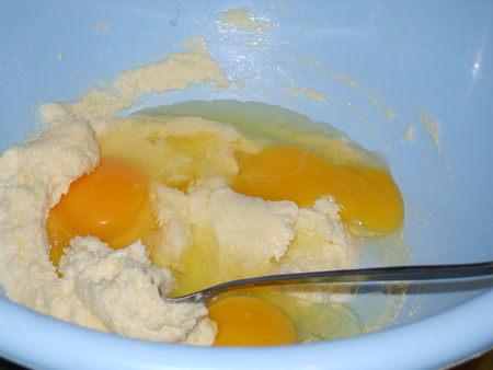 Добавляем яйца, соду и муку
