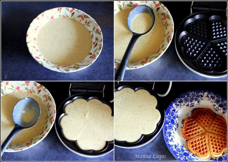 * Жарим на сухой антипригарной сковороде или в такой вот вафельнице (первый раз можно слегка смазать маслом), или на обычной сковороде на растительном масле.