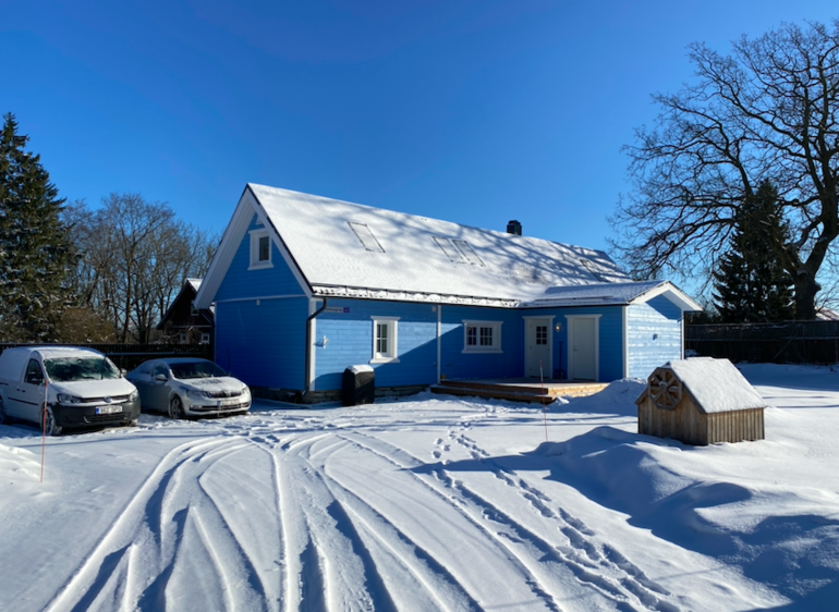 Перестроили старое здание бани в дом. Сначала, как дачу хотели, но так нам понравилось, что получилось, что теперь живем сами :) Дом в 10 км от центра города, так что не то чтобы мы уехали в дали дальние.