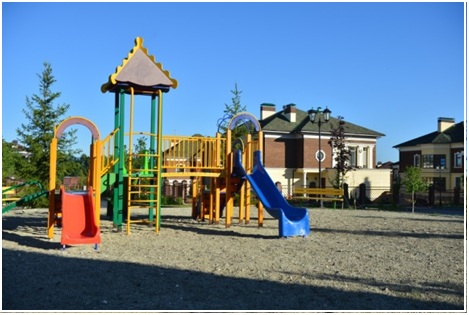 это я просто не захватила на фото, а качели там есть ) И спортплощадки то же.