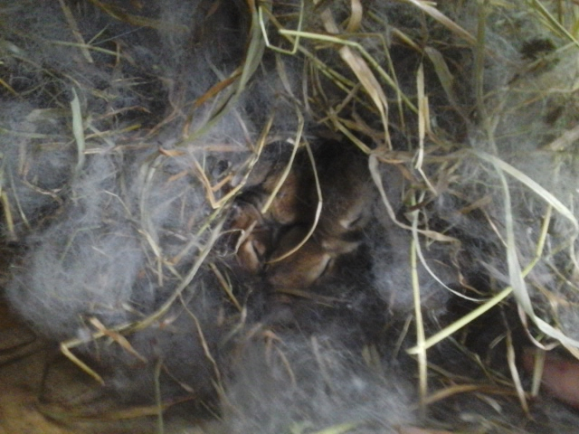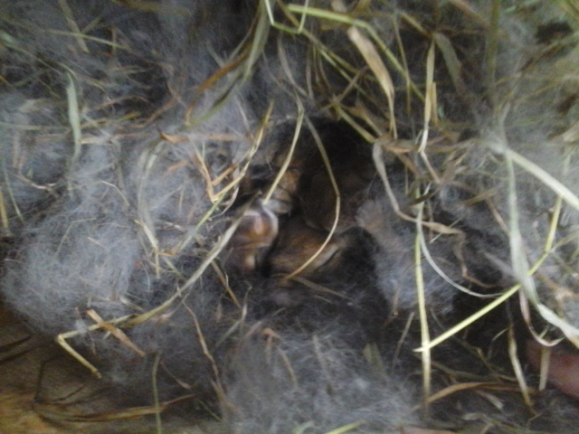 Подсобное хозяйство: куры, кролики, прочая живность.Третьего октября у нас родились крольчата. Шесть душ, все живы, здоровы. Мама- Венская голубая, папа- помесь неизвестных пород ярко рыжего окраса. Так вот, когда они родились, честное пионерское, они были черные. Сегодня залезли с планшетом в маточник, щелкнули гнездо, а они... по-моему все рыжие :))). По фото совершенно непонятно где голова, где попа, где один заяц кончается, а другой начинается :) Я удивляюсь, как нам удалось их посчитать. Они как о-о-чень крупные, толстые мыши. Гнездом, в котором они живут, можно гордиться. Такое оно глубокое, пухом заботливо выстеленное, крышка из пуха и соломки. Просто супер- домик. Мамочка- золотце.