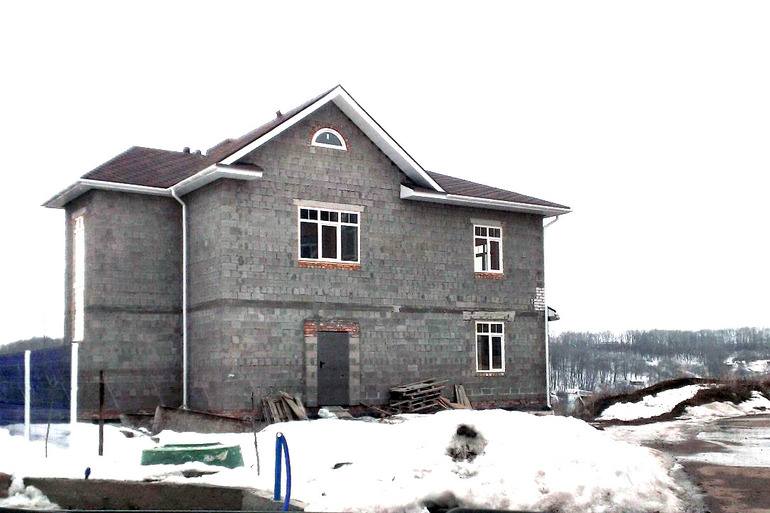Долго, два сезона, в первый мы поздно начали, осенью, фундамент заложили, он сложный у нас был, тк участок с наклоном. И во второй сезон подняли дом и крышей накрыли, зимой этой окна и лестницу поставили.