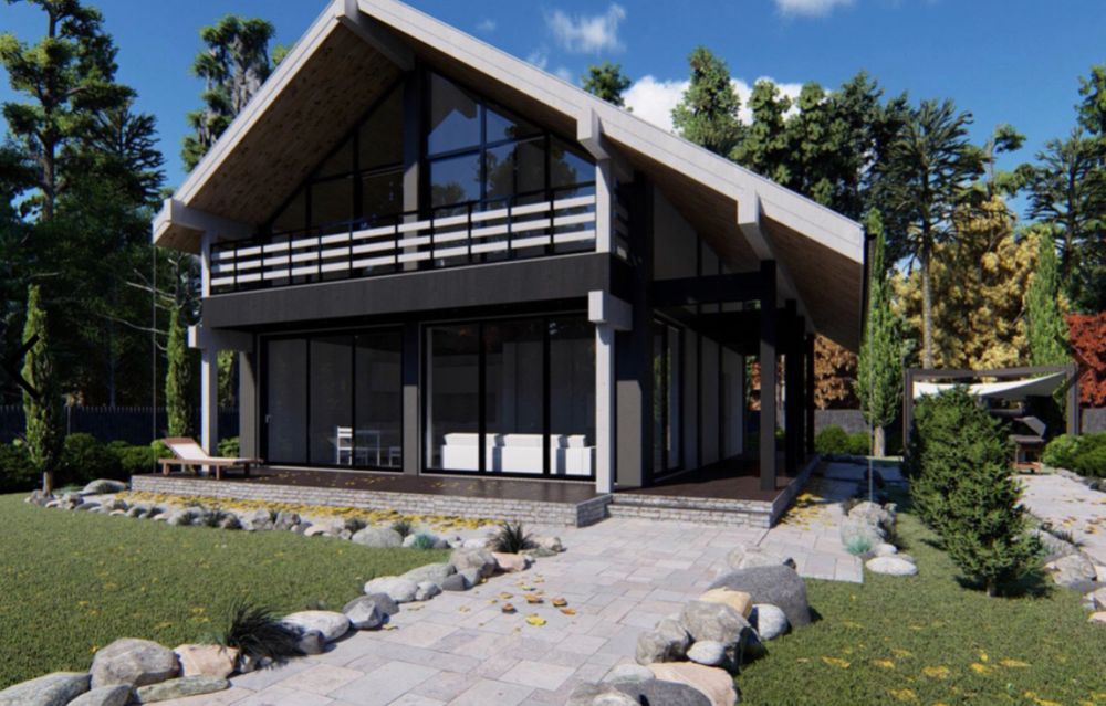 Отдает за газовый котел 3 тыщи в месяц!!! В доме ЖАРА)))вопрос качества...если интересует, скину контакты в личку)Мы уже почти получили от него готовый проект, у нас окон поменьше, так как окна — это деньги в плане их изготовления, но по стилистике да, шале)