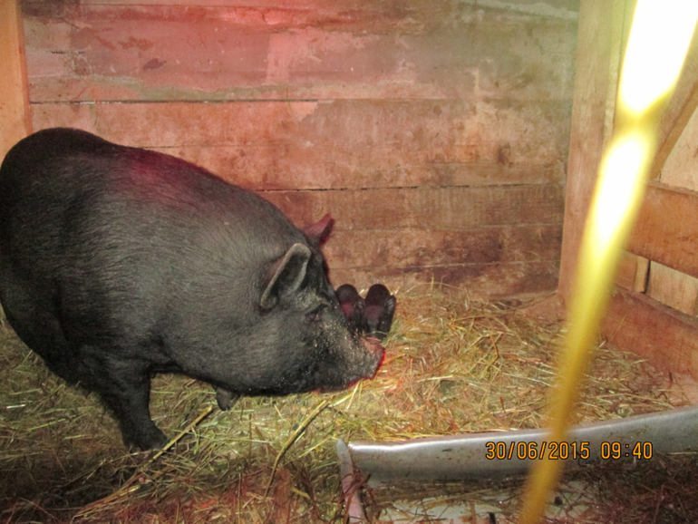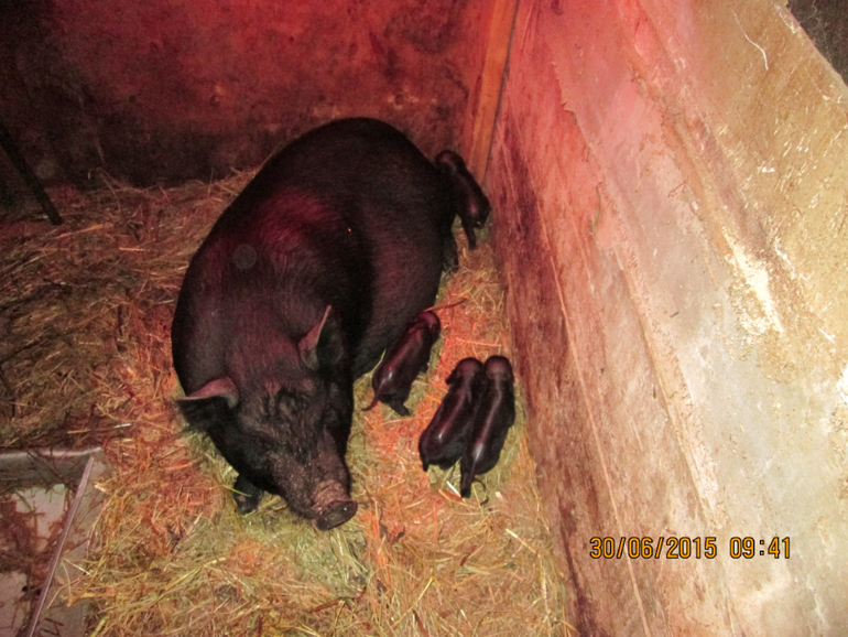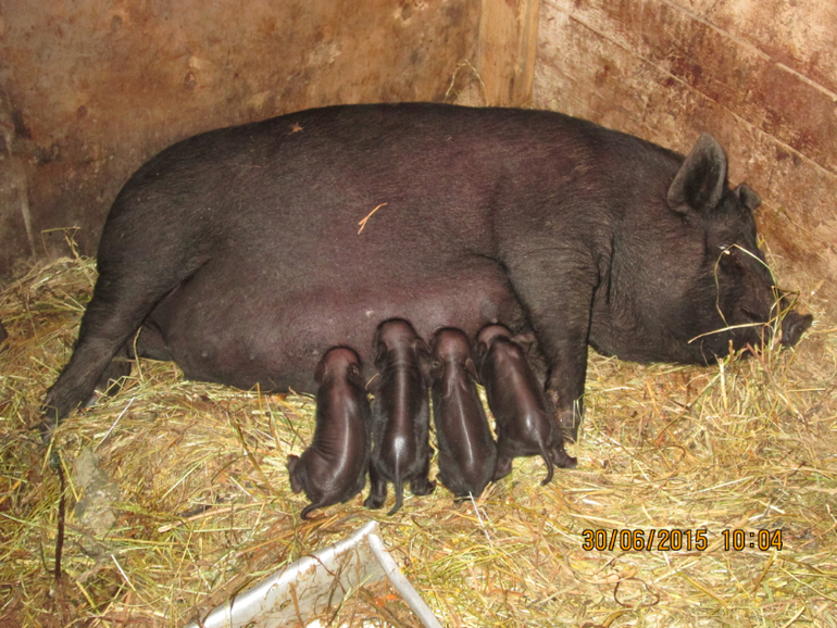 Метиски — русскойбелой с ландрасом. Трёх-месячные они ещё, живут в загоне с полугодовалой вьетнамкой, в два раза почти крупнее её, но она их воспитывает)