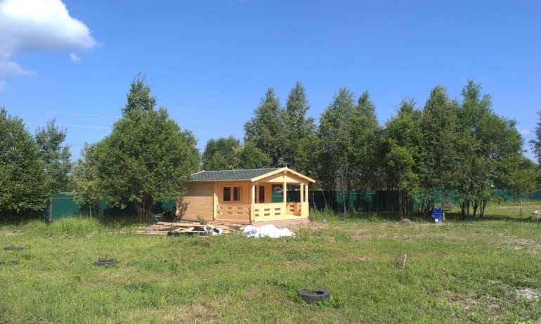 Участок выровнен, электричество проведено. Можно жить в летний период. Домик поставлен в месте, где планировалась беседка. Под основной дом оставлено место.