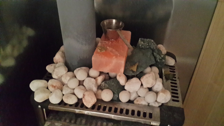 - Сверху я положила кирпич розовой гималайской соли - когда пар проходит через него то воздух невероятно становится морским и целебным:)
