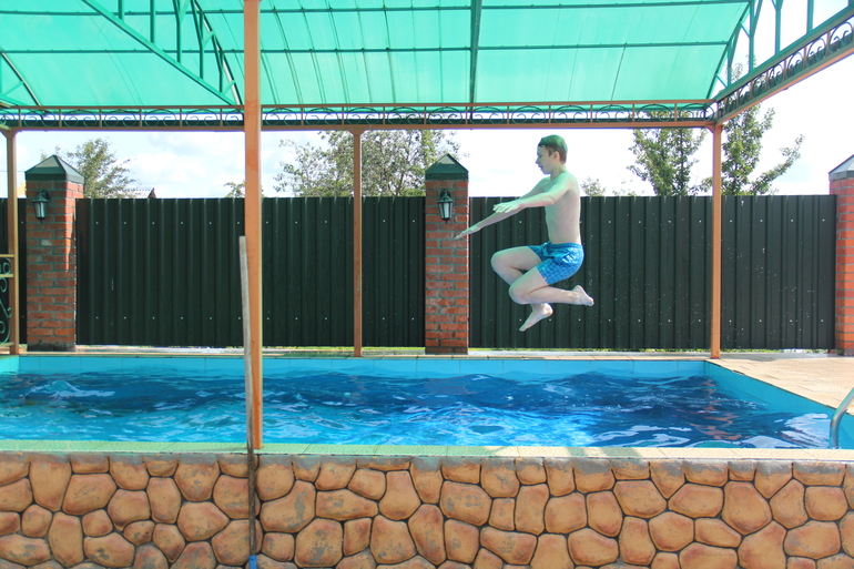 Бассейн у нас тоже будет))чуть позже, а то дети привыкли уже