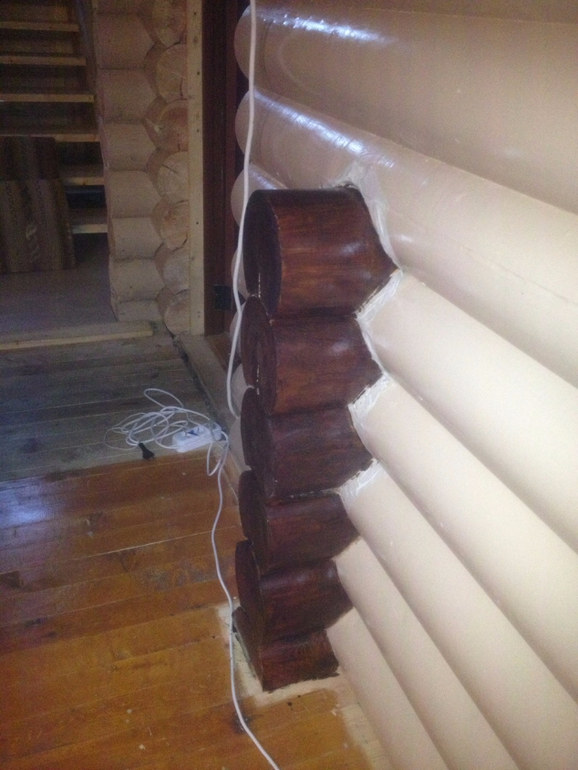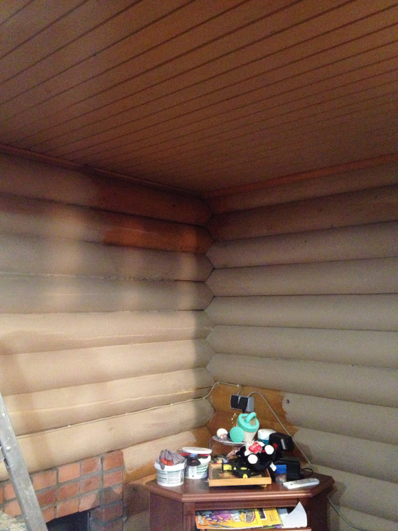 перекрасили - много ушло сил и краски, проконопатили заново, положили ламинат и плитку перед печками...ну вроде лучше , чем было ...мне нра, осталось еще часть стены камнем отделать и печь от сауны порталом закрыть, но в связи с курсом цены на них взлетели до небес....