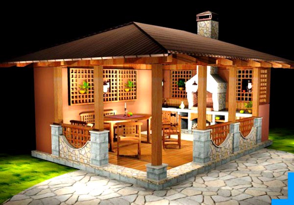 Ну зачем открытую в нашем климате? У нас беседка максимально закрытая, с печкой, но со сдвигающимися окнами. У соседа открытая, типа Вашей, все время сидят с гостями дома...