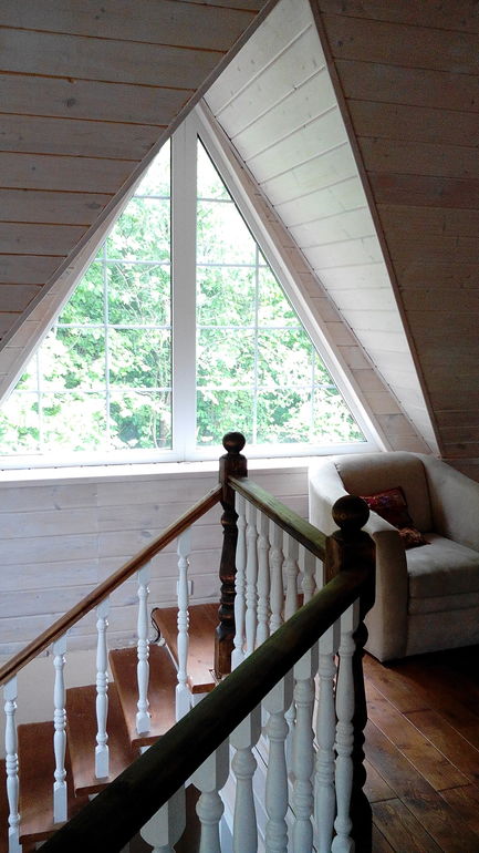 Поделитесь идеями штор для треугольных окон, пожалуйста. Вдруг кто сталкивался с такой же проблемой...пока только пришли в голову: вертикальные жалюзи, но у меня с офисом ассоциируются и нитевые, но в спальне слишком яркое солнце, боюсь не спасут:(