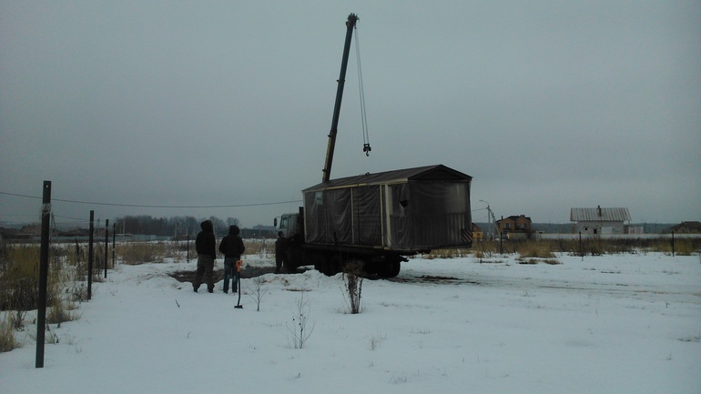 Прошлой зимой я начала активно думать - какую первую постройку я хочу на своей земле. По началу виделась утепленная бытовка с большим-большим окном в пол. Кода стала смотреть вариант - то желаемое оказалось имеет цену в 70-80 тысяч. В этом момент батя скинул мне сайт, где он покупает бытовки. Изучив сайт, я точно решила, что не хочу просто бытовку - а хочу баню-бытовку! Ведь в дальнейшем мы все равно хотели баньку, и пользы от баньки больше, чем от бытовки которая в последствии станет складом. К тому же цена у баньки оказалась 140 тысяч, что с учетом новогодней премии я вполне могла себе позволить. Так вот, не дождавшись весны и запланированного для установки бытовки отпуска, мы отправились в феврале расчищать снег для баньки. Доставку переносили, поэтому приехало нам наше чудо аккурат 1 марта, в день рождения мужа . Сразу же были приготовлены шашлыки и съедены в честь первой постройки и именинника))