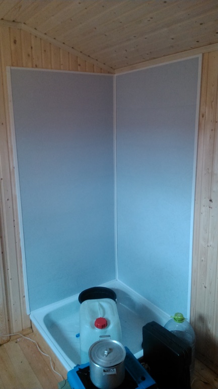 Обили пластиком душевой уголок.