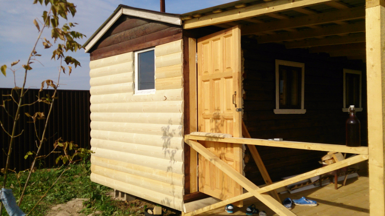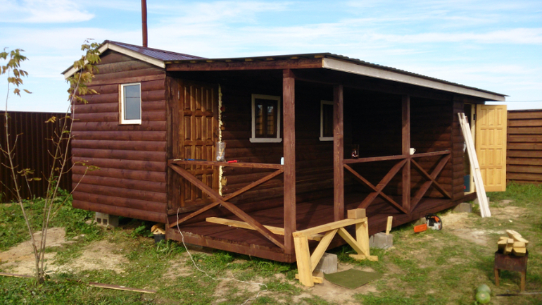 Конечно еще не все готово, но пока что так - такая банька-бытовка с терраской у нас получилась. Выходить на террасу после баньки просто кайф))). Я довольна как слон. Кажется, мои мечты потихоньку сбываются.