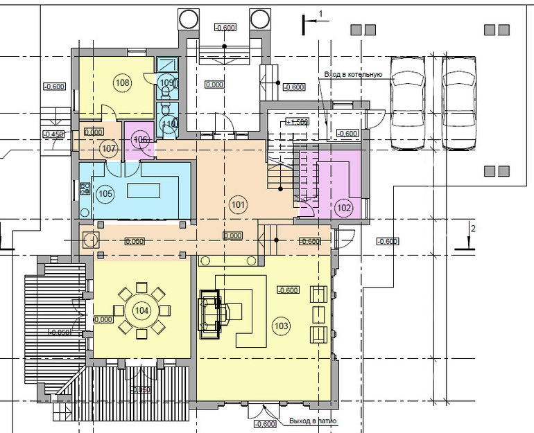 Этот дом спроектирован для курортного проекта. Не корректно опубликовывать всю информацию, поэтому покажу один 1 этажа, для понятия конфигурации дома. Площадь дома 600 кв.м.