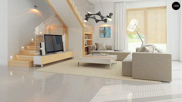 Под лестницей место ни разу не потеряно, все использовано по проекту, вроде. Под нижним пролетом гардероб для гостевой спальни на первом этаже. А под верхним - место для установки телевизора в столовой, возможно, еще буфета встроенного, этот пролет присоединен к столовой, лестница будет легкая и красивая, добавит пространства. Это из дизайн-проекта, чтобы стал понятен внешний вид лестницы приблизительный: