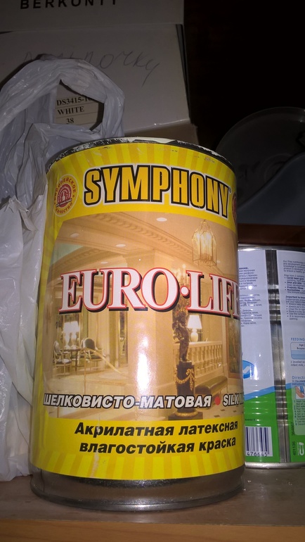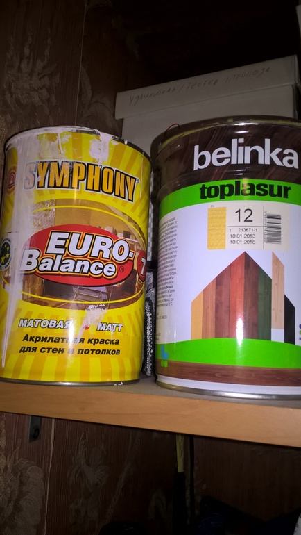 Простите что так долго) У меня даже баночки остались. Белинкой стены в белый красили, очень интересно получается, текстура дерева видна. А коллировали другую в желтой баночки. Прям в магазине выбрали цвет.Они его в банку добавляли и получалось то что нам хотелось)