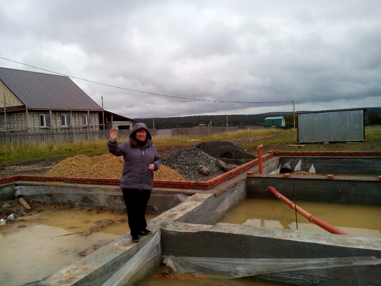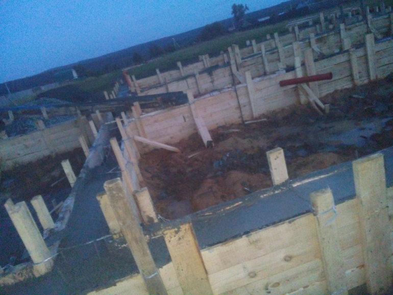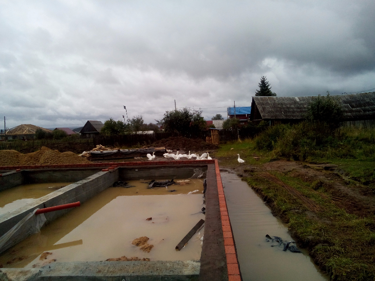 Погода явно была против нас), то фундамент превращался в бассейн(на фото видно что гуси соседские были в восторге от этого)), то грузовые машины застревали (что следовало для нас ощутимыми поправками в бюджете и конечно же в минус). То сосед ниже, говном весь исходил, ну не чего, скоро мое время настанет мстить))))