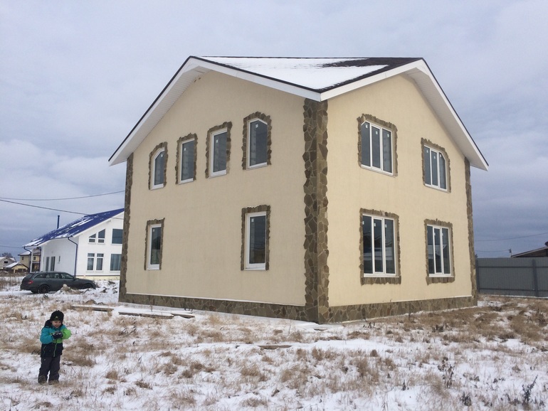 Сегодня ездили еще дома смотрели,понравился один,из газобетона,общая 244, 9 соток. Но там сразу придется везде окна менять на 2 камерные,сейчас 1 камерные стоят. Пол заливать надо,там как входишь в дом спрыгиваешь вниз)) газа нет,септик надо делать,а так конечно понравился,огромные окна как я люблю,просторные комнаты,3 этажа,третий мансардный полноценный этаж! Завтра муж поедет с нашей родственницей-строителем этот дом покажет,интересно что она скажет. Вот он,планировки у меня нет,фоток внутри тоже.
