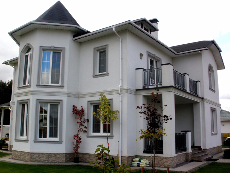 Ну просто это сейчас самый распространенный вариант внешнего вида загородного дома. Простой, практичный, умеренный по бюджету. А элементы классики дом украшают и дают связь с любимыми нашими согражданами интерьерами в классическом стиле. Вот такой собственный стиль выработался у наших застройщиков))
