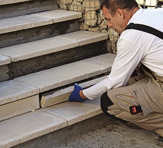 9. Приготовьте затирку White Hills строго в соответствии с инструкцией, указанной на упаковке. Заполните швы с помощью строительного шприца-пистолета или специального пакета для затирки. При заполнении швов следите, чтобы раствор не попал на поверхность ступеней и брусчатки. Своевременно (до высыхания) удалите излишки затирки с поверхности.