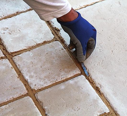 10. Шов должен быть заполнен полностью, без пустот и неровностей. Через 30-40 мин после того, как затирка начнет подсыхать, загладьте швы с помощью резинового шпателя или специальной лопатки для расшивки. После того как затирка высохнет, удалите излишки раствора щеткой средней жесткости.