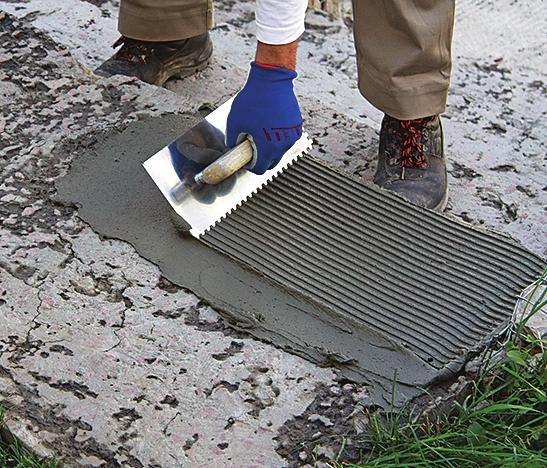 3. Приготовьте клеевой раствор White Hills строго в соответствии с инструкцией, указанной на упаковке. Нанесите гладким шпателем клеевой раствор на поверхность основания и на тыльную сторону ступени. Разровняйте зубчатым шпателем.