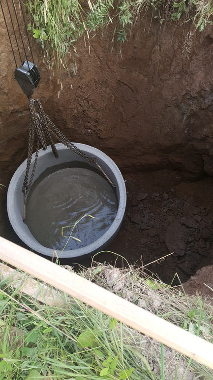 А вчера волевым усилием поставили кессон, соединили его с закладными в дом, установили ливневый/дренажный колодец (кольца)