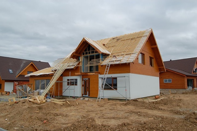 Второй этаж мансардный, высота стен 1,6. Фронтоны на сторону входа и противоположной. Ещё думали насчёт мансардных окон, но мужу на втором этаже с левой стороны нужно именно слуховое окно, чтобы "любоваться закатом".
