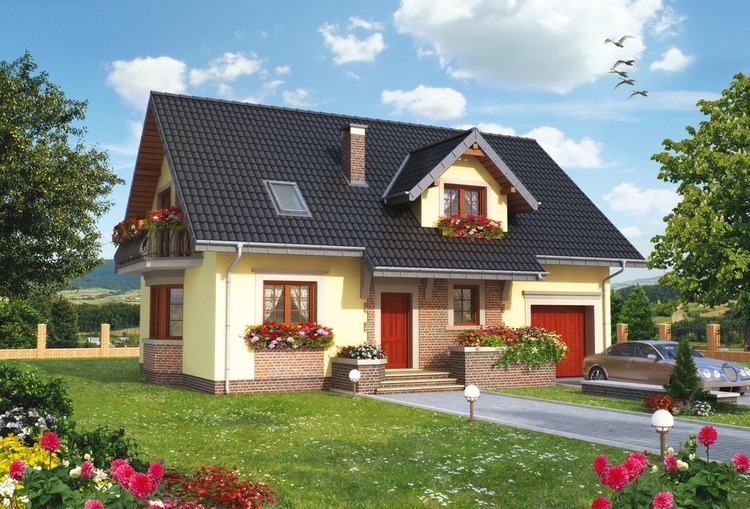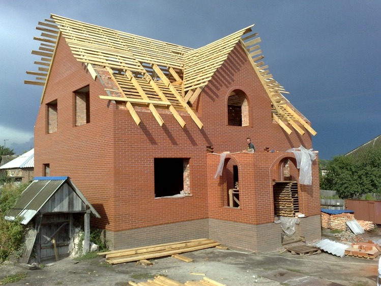 Изначально у нас фронтоны планировались при входе, теперь же при входе в дом получается скат крыши (со слуховым окном)