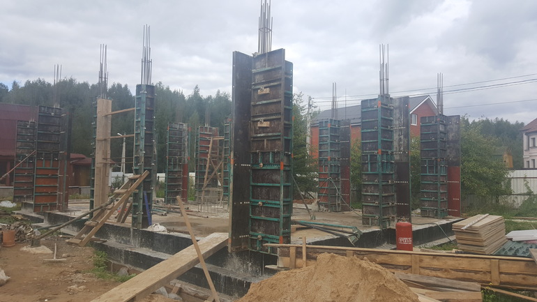 Вот так выглядит инвентарная опалубка будущих колонн
