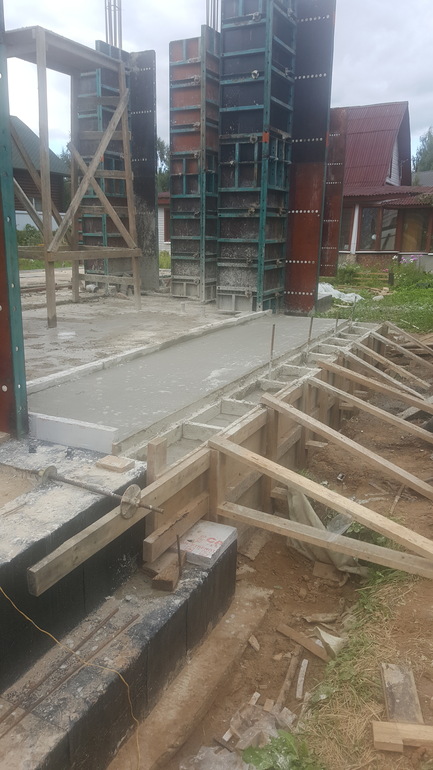 Строительство: от фундамента до крышиМы уже отлили колонны первого этажа)) Сегодня вентшахты начнут выкладывать и готовить опалубку под перекрытие 1 этажа. Крыльцо тоже отлили, со ступенью сразу. Скоро закончатся самые нудные работы - и появится кладка 1 этажа. А заодно и лестница))