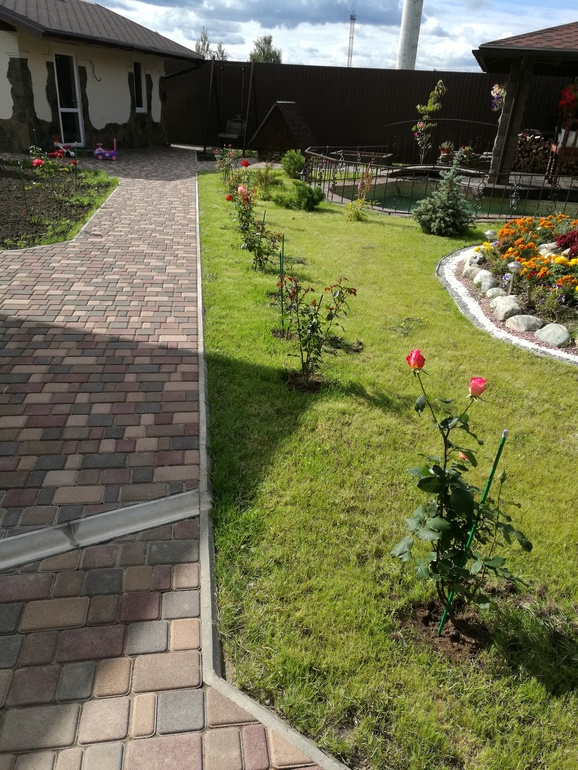 Вдоль дорожек по двору посадила 70роз..еще конечно маленькие но уже цвели здорово в этом году.