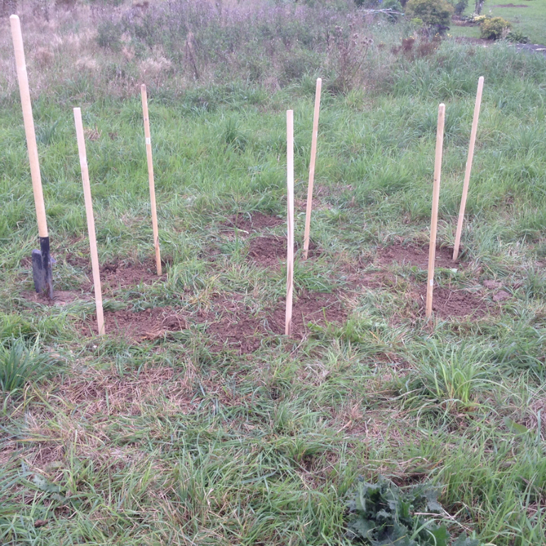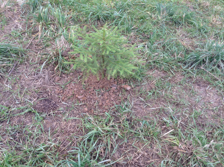 Посадила тюльпаны, лилии, нарциссы . И как бы за забором ( его еще нет) посадила семь елочек.