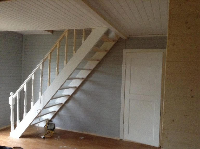 Лестница белая и серые стены ( немного отдают в голубой)