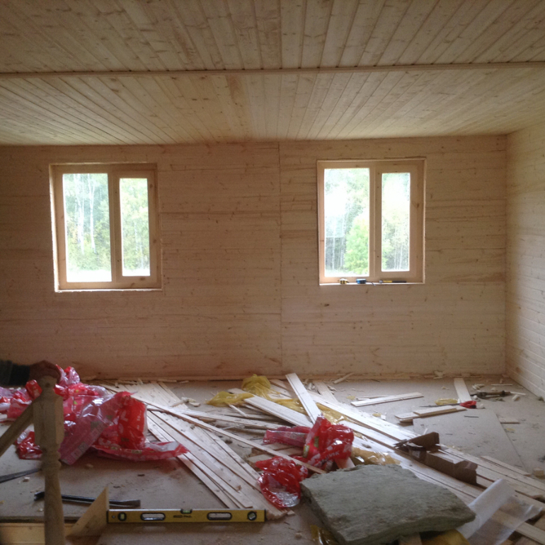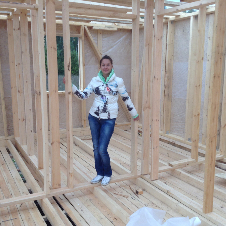 Сначала искали варианты покупки уже готовых домов, но поездили, посмотрели и решили покупать участок и строить. Участок купили у знакомых в июле. Вокруг лес, что очень нравится. Нашли в интернете проект, изменили немного. Дом каркасник. Начали собирать в сентябре. Собрали домик за три недели. Дальше мы с мужем ездили красили, красили, красили) оставались несколько раз на ночь. Купили обогреватель, спали на надувном матрасе. Сделали канализацию, пробурили скважину. Веранду начали делать муж с другом. Но дел еще много) много фото