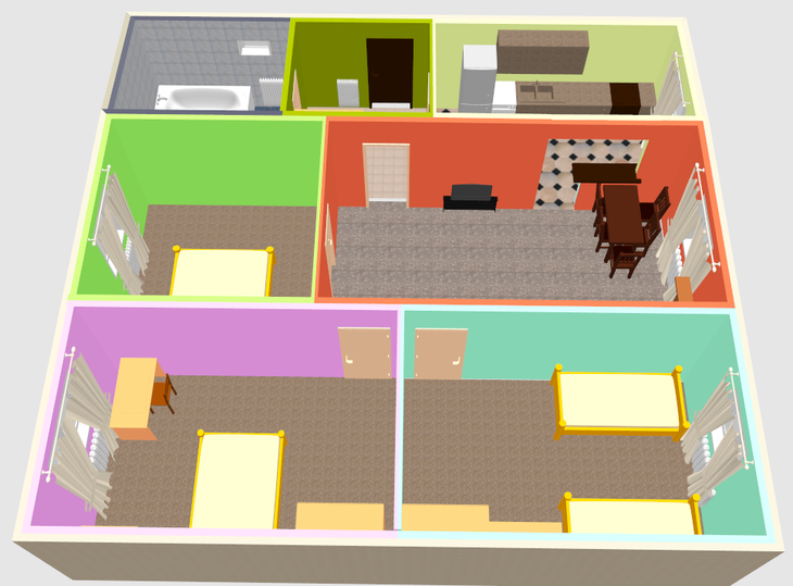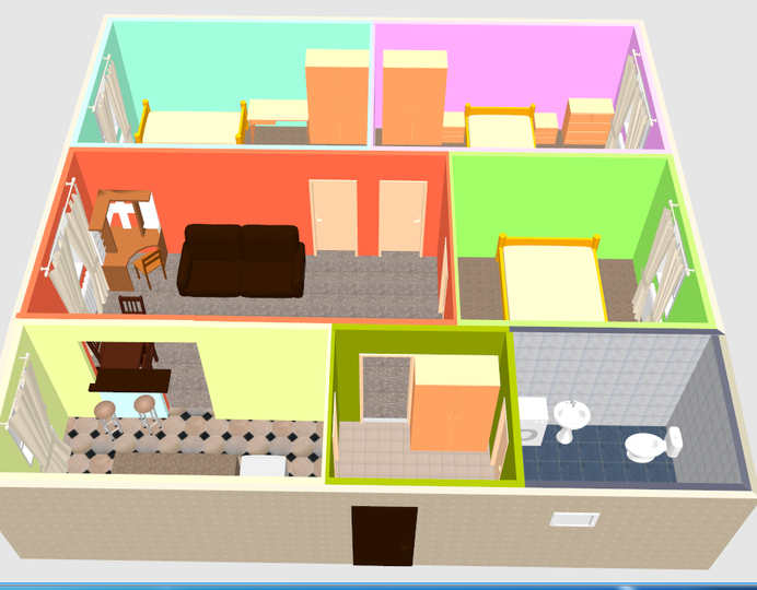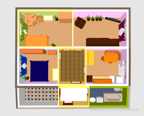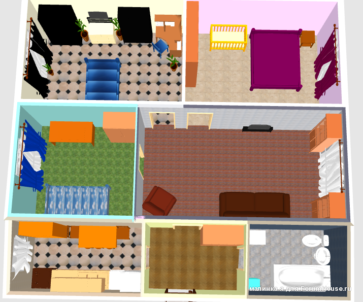 Обсудим проектДевочки,скажу сразу,что домик у нас маленький.Не такой современный,как смотрю тут есть.Просто мы живем в поселке и хотели купить дом в 55 кв.м.- стандарт для нашей месности и нам все нравилось и казалось отличным вариантом.Потом не получилось и решили строиться.На тот момент нас было четверо,денег мат.кап. +350 т.р.наличными.итого 800т.р.участок взяли за 100т.р.и начали строить дом 7х10,где 2 комнаты по 15кв.м, 1-10кв.м, кухня-10 кв.м и сделали еще пристрой,где ванна и котельня.Потом родился еще малыш,а мы все блин строим) решили кухню перенести в котельню, получаем спальню дочке 15 кв.м, спальню мальчишкам 15 кв.м,себе спальню 10 кв.м и зал 19 кв.м проходной.кухня и ванна в пристрое. Все вот устраивает,особенно своя личная спальня,но!не устраивает кухня.Размер 2х4-это очень узко.Сейчас у нас 2,3х3,5 м, нас пятеро,мне тесно на ней. Вот думаю,может сделать как раньше хотели кухня 3,25х3,3м,но тогда либо без личной спальни,либо без зала.Можно в кухне малютку уместить,посиделки с гостями там устраивать зимой(это 4 др и нг),а себе спальню оставить или сделать зал и спать там на диване(хотя так скучаем по своей кровате,она в гараже стоит четвертый год).Посоветуйте как быть?вот примерно план.На расстановку мебели не обращайте внимания,дочь фантазировала.