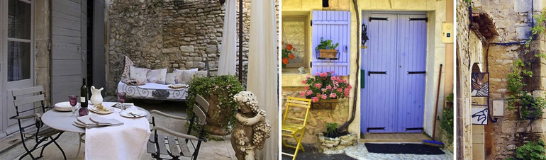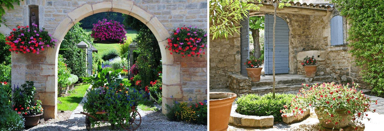 Конечно, моя дача находится не на юге Франции, тем не менее, уж очень хочется воссоздать эту атмосферу. И это не так-то сложно... мне кажется. За плетенными стульями весной поеду в ОБИ, Икею или в другой подобный гипермаркет. Цоколь своего домика отделаю искусственной плиткой под камень. Булыжнички нашла у White Hills. А цветы в горшках могу привезти из дома - и так почти вся кухня ими уставлена :)