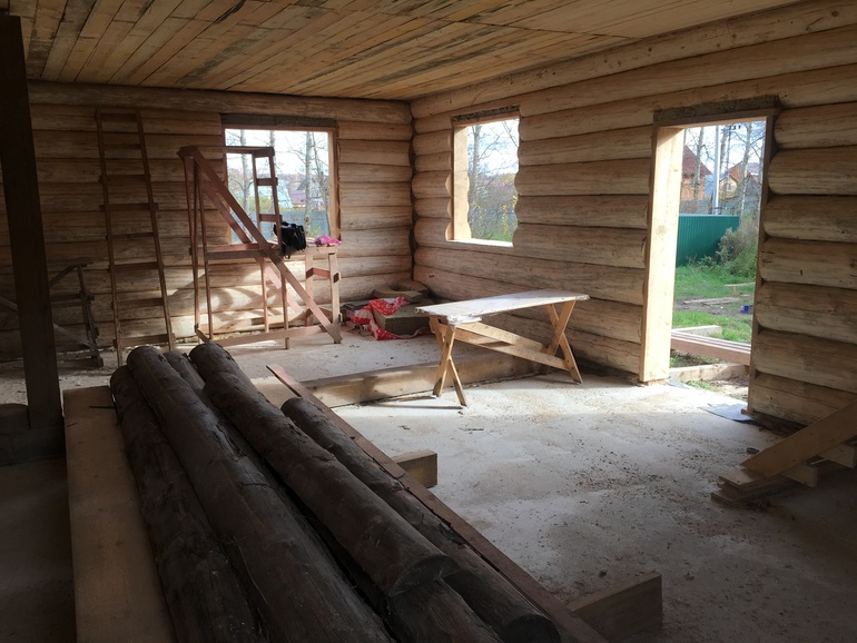 Сейчас заехала бригада на конопатку и окосячку