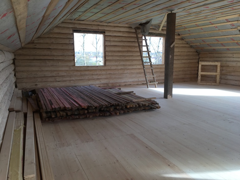 Ещё перекрытия между 1 и 2 этажом лафеты, но сборщики их неправильно положили. И смысла от них нет, пришлось усиливать доской на ребро