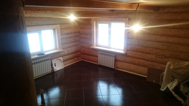 Сперва я дала задание окосячку (потом приедет замерщик), тк надо поскорее вставить окна, дабы снега не намело в дом. Потому конопатка. Мне бригадир говорит, что ничего не поднимется, тк диаметр брёвен большой и вес большой