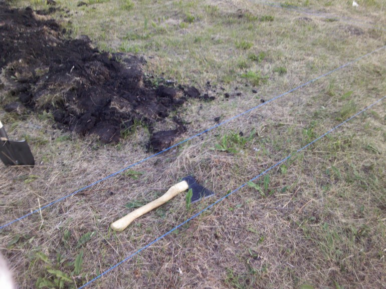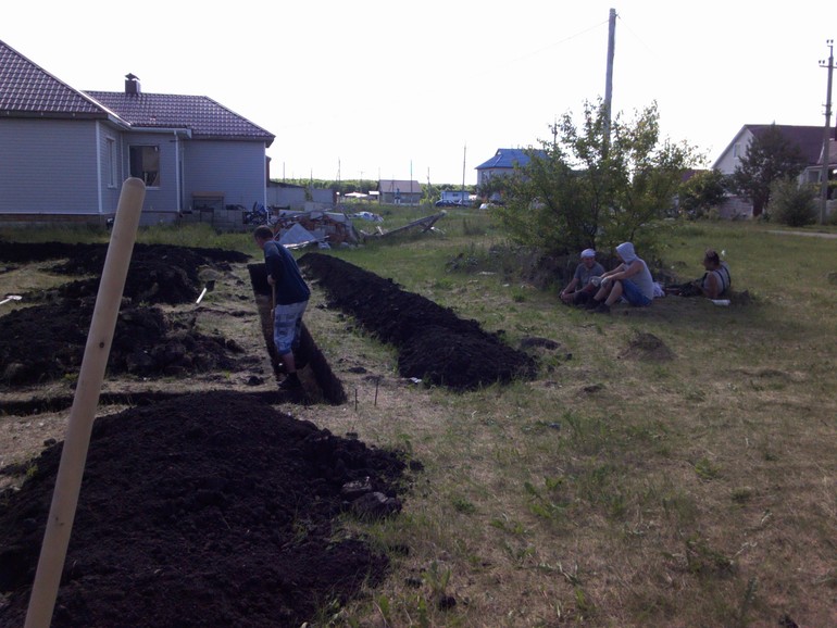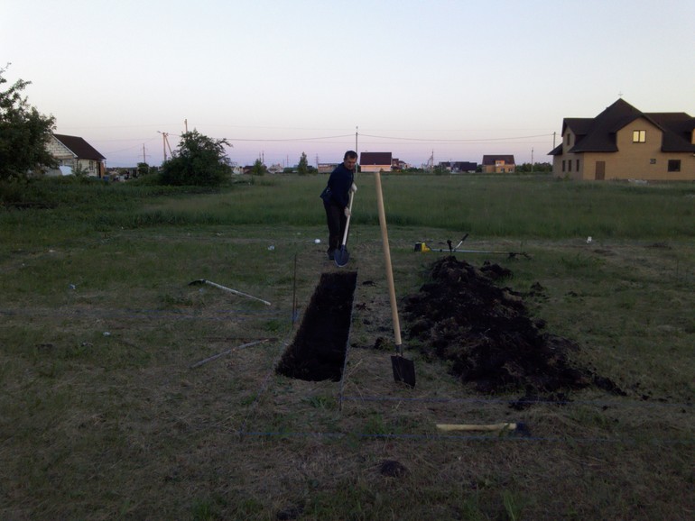 Сосед строитель сделал нам разметку, позвали трех кумовьев и начали копать фундамент. За два дня траншея была готова