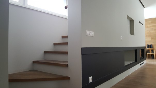 Дизайн помещенийДолго у нас лестница стояла не закрытая. Хотела сделать красивые фото и выложить. Но решила показать какие есть.) там где держатель- будет телевизор. Под ним полки закрытые темным стеклом. Стекла пока нет. Фары- временно лежат, пока муж не вставил в машину. )